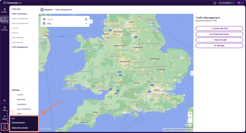 • Support is now labelled “Help”. You can raise a support ticket by clicking on the Help icon in the left sidebar, then selecting the Raise help request option. This action will open a new tab. You will have to login in order the raise a support ticket.
